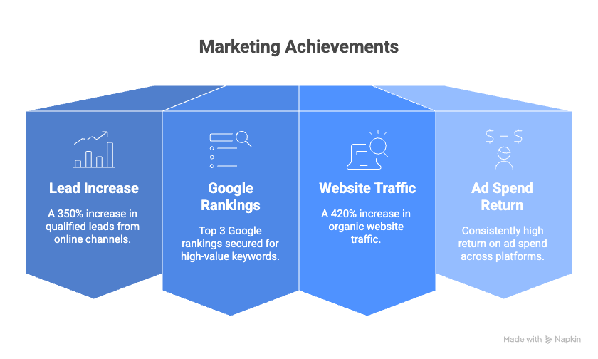 - 420% Increase in Organic Website Traffic due to sustained SEO and content efforts.